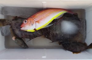 カワハギ、イトヨリダイ、サバ、アジ、アカハタ、シロムツなどが釣れました。