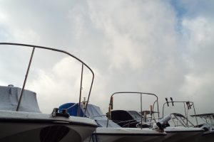保管艇もうっすら雪化粧