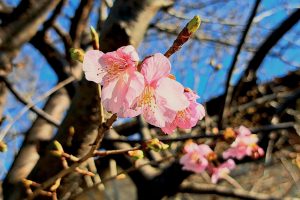 秋谷海岸入口信号付近の河津桜が早くも咲きだしました。